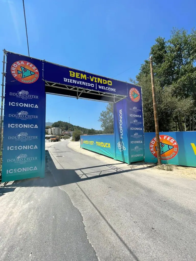 No Varosa Fest, o foco do nosso trabalho incide na criação de estruturas que aliam a funcionalidade à segurança. Projetamos e montamos os pórticos de entrada do recinto, estruturas de grande escala que servem de cartão de visita ao festival. Estes pórticos são calculados para garantir uma estabilidade total, suportando com segurança toda a carga de sistemas de som, iluminação e sinalética que dão as boas-vindas ao público.